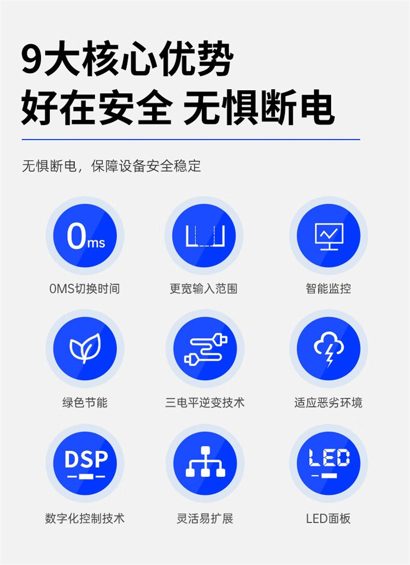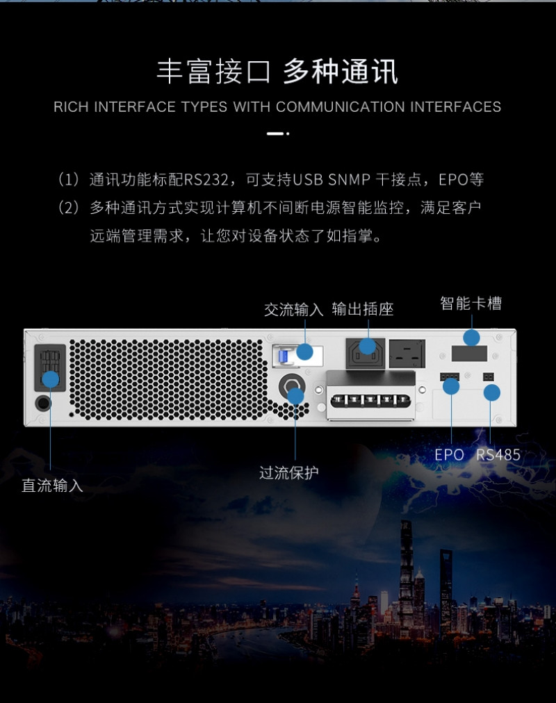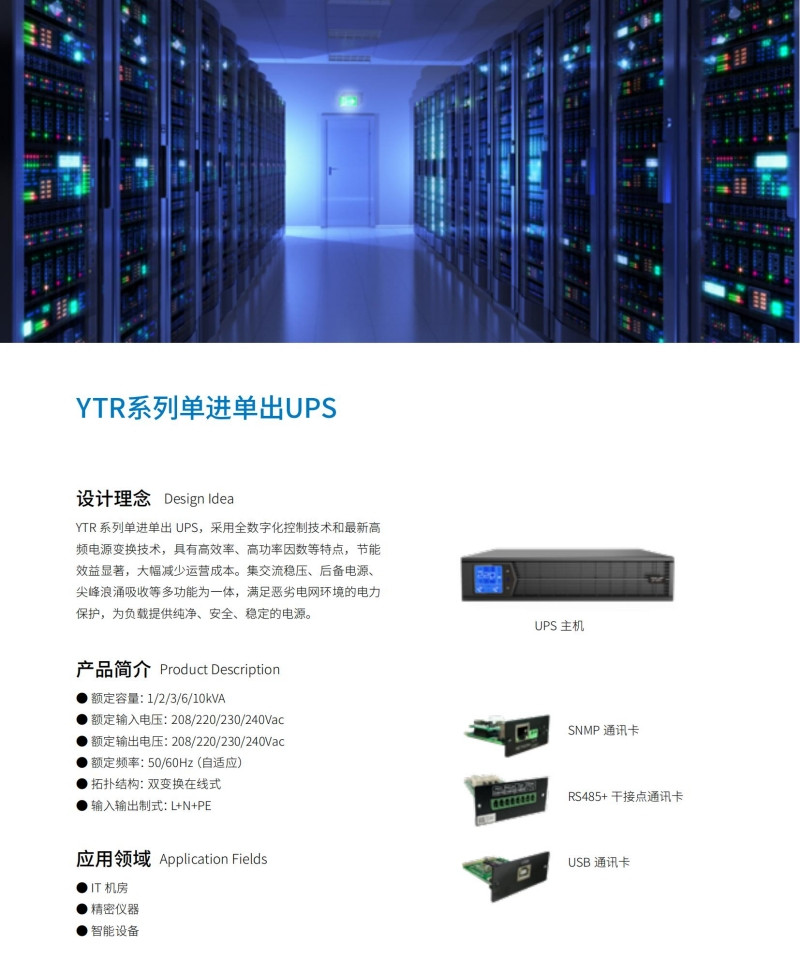 * 在线式设计:能够为负载提供持续、不间断的电源供应,避免因电源故障造成数据丢失或设备损坏。