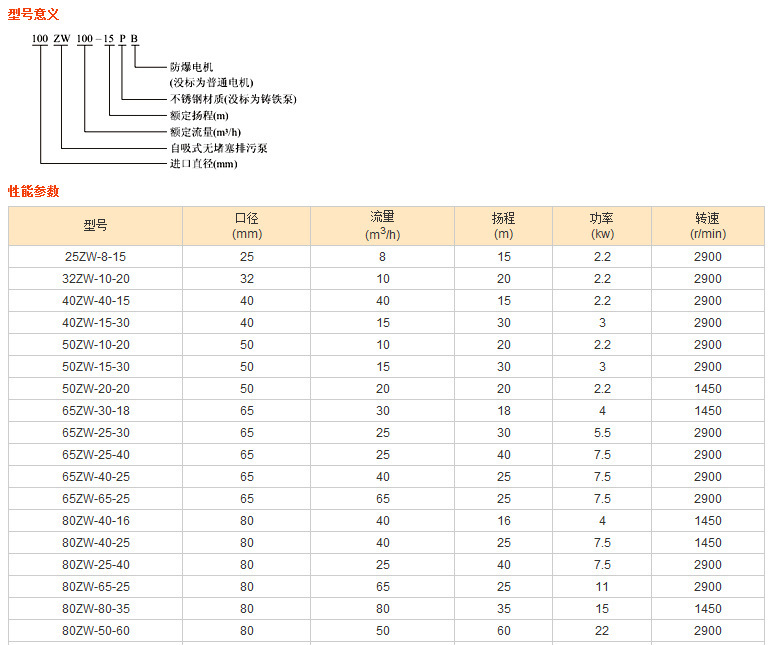 ZW系列自吸排污泵有3种材质:铸铁、304不锈钢和316不锈钢, 客户可以根据需求来询价.