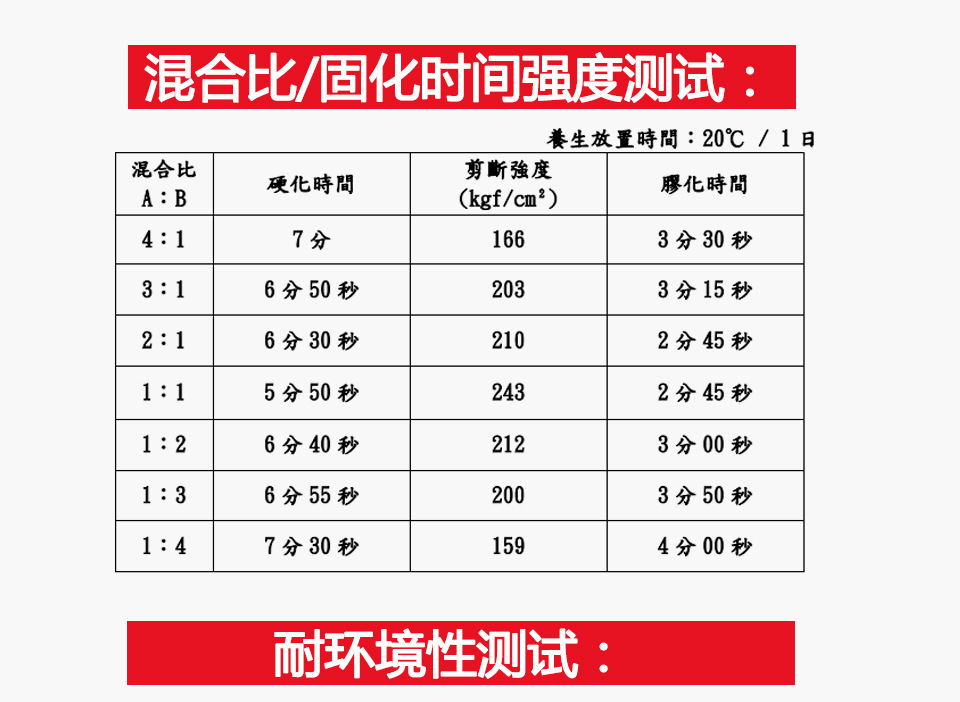 硬化时间:A、B胶混合后5~6分钟硬化。
