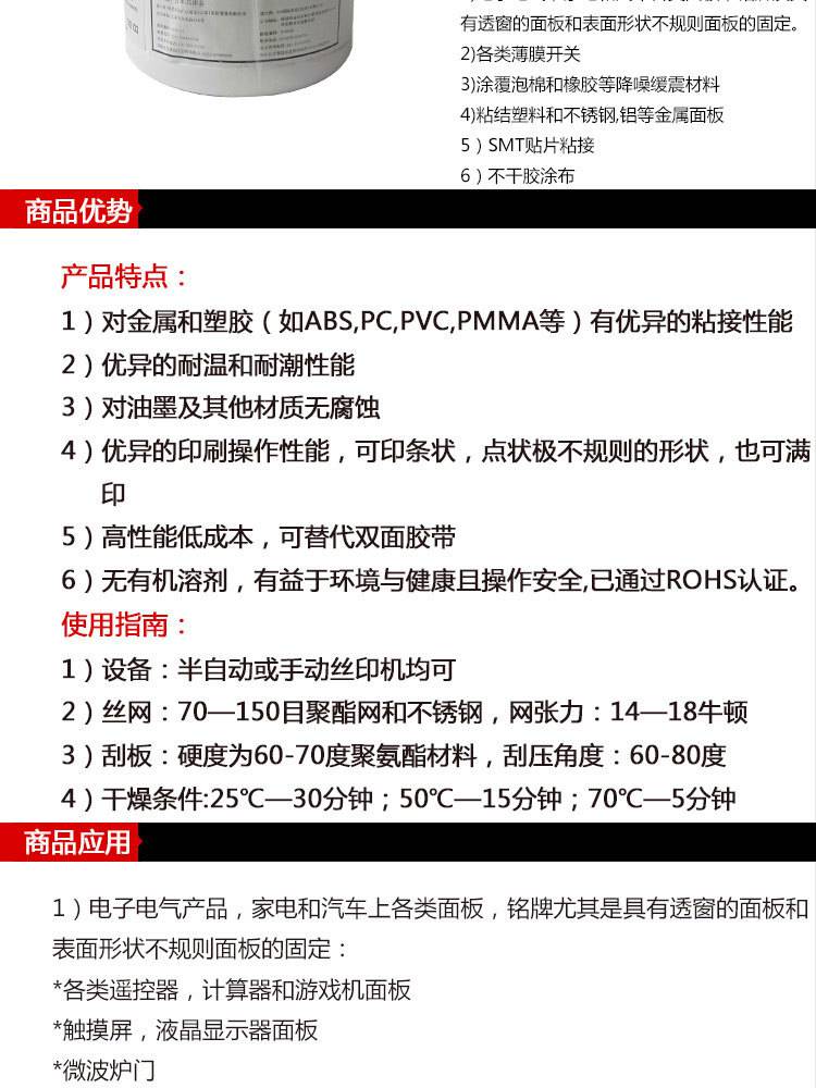 1)对金属和塑胶(ABS,PC,PVC,PMMA等)有较好的粘接性能;