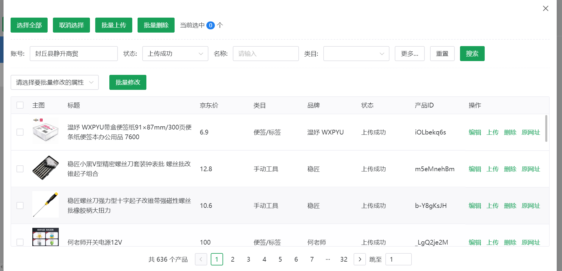 1.一键采集京东、天猫产品,直接上传到京麦后台并申请上架