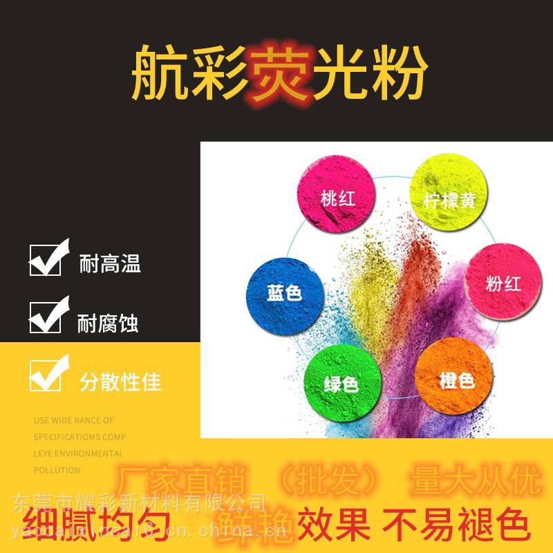 航彩荧光 AS或AX此系列荧光颜料是采用韩国进口原材料生产制成,具有较高的透明度和较高着色力度,安全环保且无气体排放;加工温度可达到230℃,个别颜色可达到280℃。