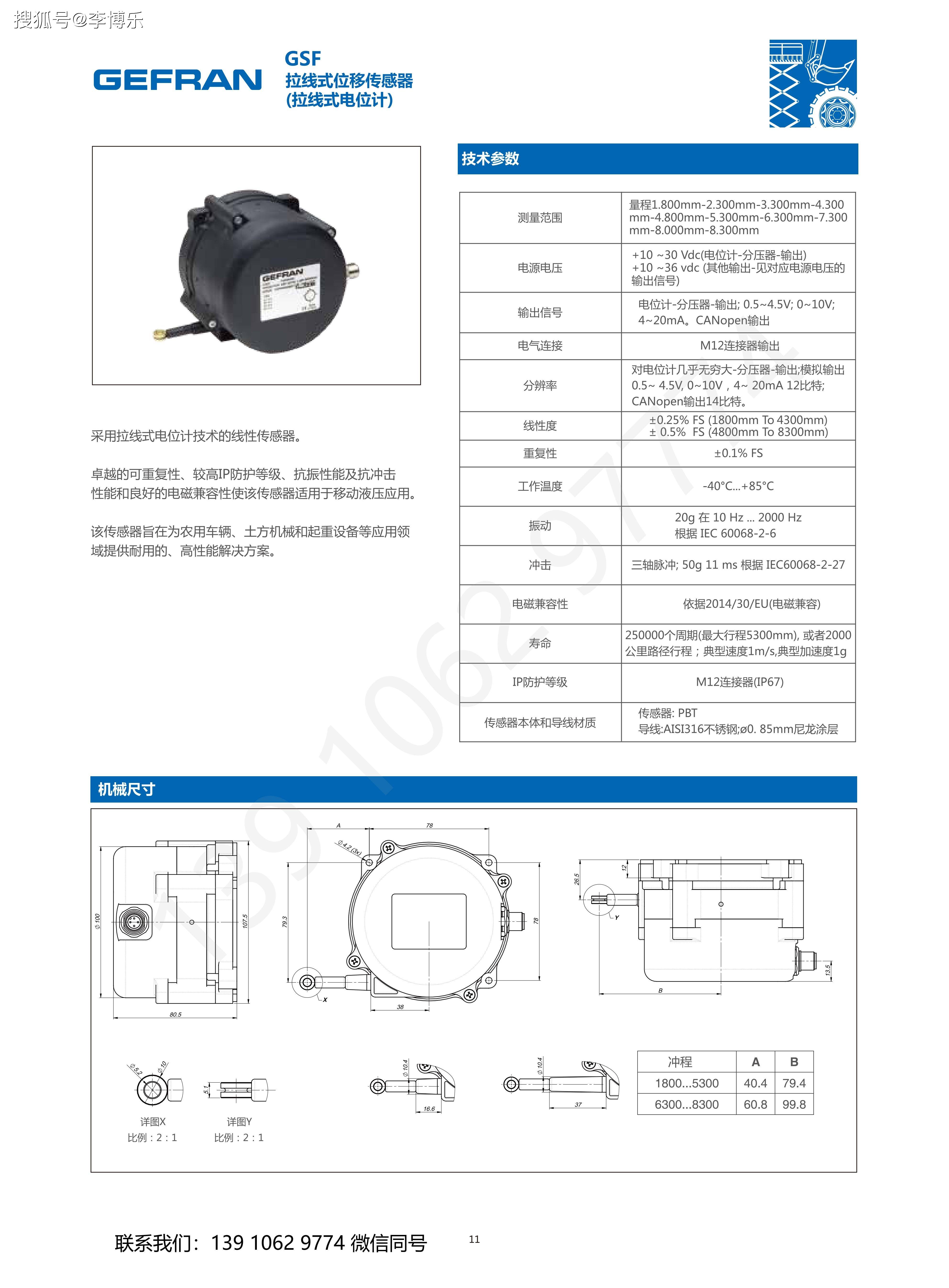 2 线性度:± 0.25% FS (1800毫米 至 4300毫米);± 0.5% FS (4800毫米 至 8300毫米)。