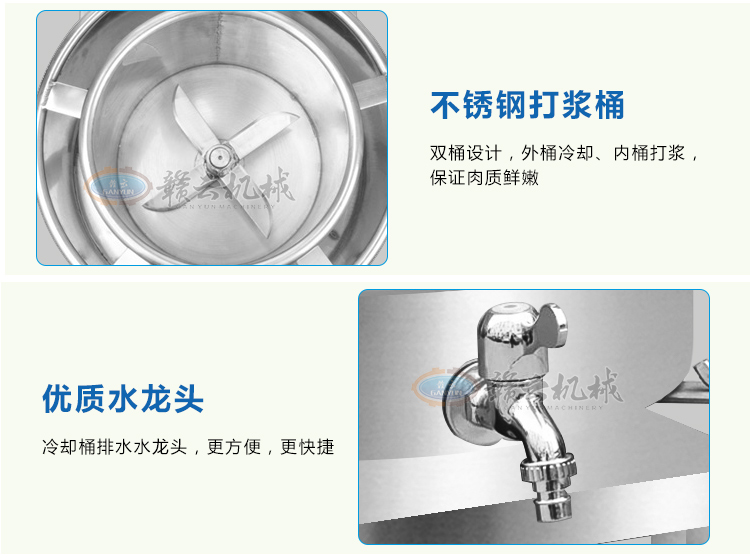 赣云牌全不锈钢传动高速肉丸打浆机,整机采用不锈钢材质,拉伸桶底部弧形设计,赣云新款肉丸打浆机标志性设计。无缝焊接技术展现高档品质。一次性可打肉浆5-6斤,2分钟左右即可完成肉浆的制作。所打肉浆细腻,是肉丸打浆设备之一。