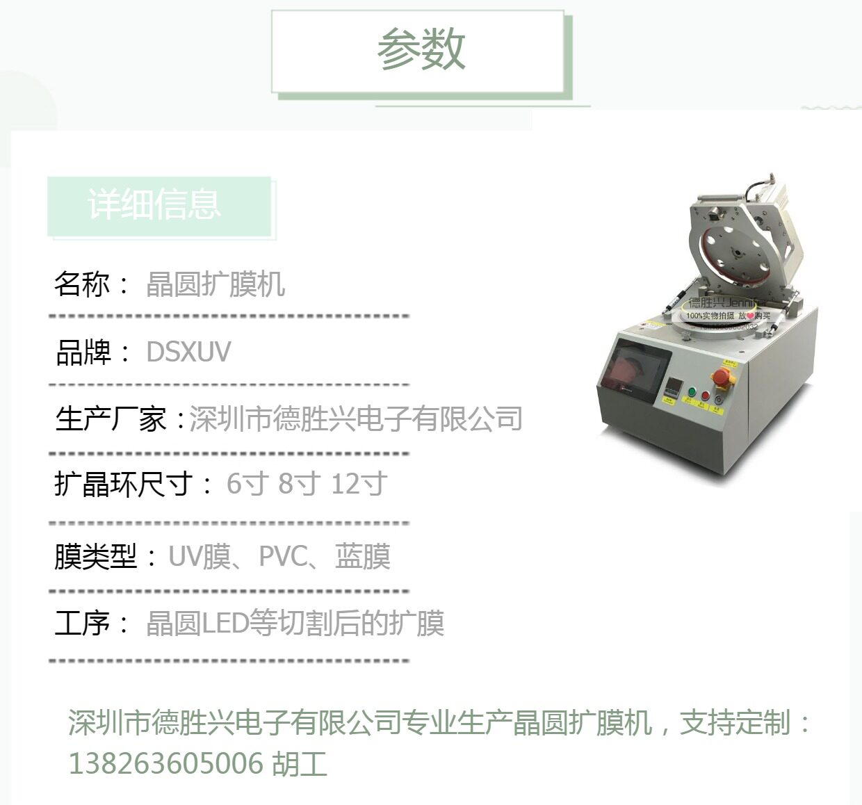 此详情页根据8寸扩膜机来做的,具体详情,请联系客服刘经理