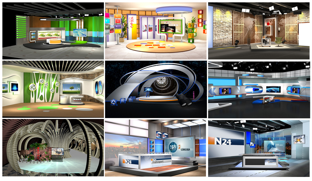 使1-3路摄像机的信号、各路PPT信号进入虚拟演播室系统,在该系统中完成与虚拟背景的完美结合。