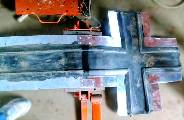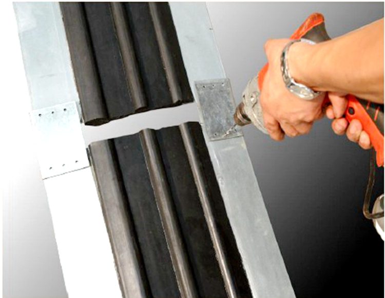 ②.在止水带钢边对接部位安装U型箍件,使用手电转打孔,并用铆钉固定。