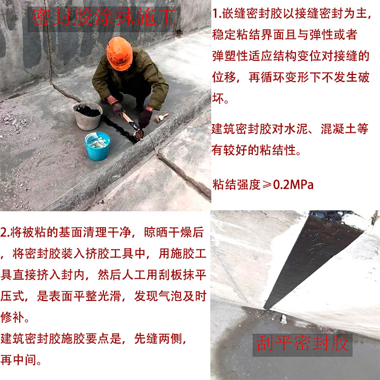 二、在施工前应先将底涂液涂于表面,待表面干燥后把缝隙的两边10mm处贴上50mm宽的防护胶带,以防施工中多余的聚硫胶把构筑物表面弄脏。