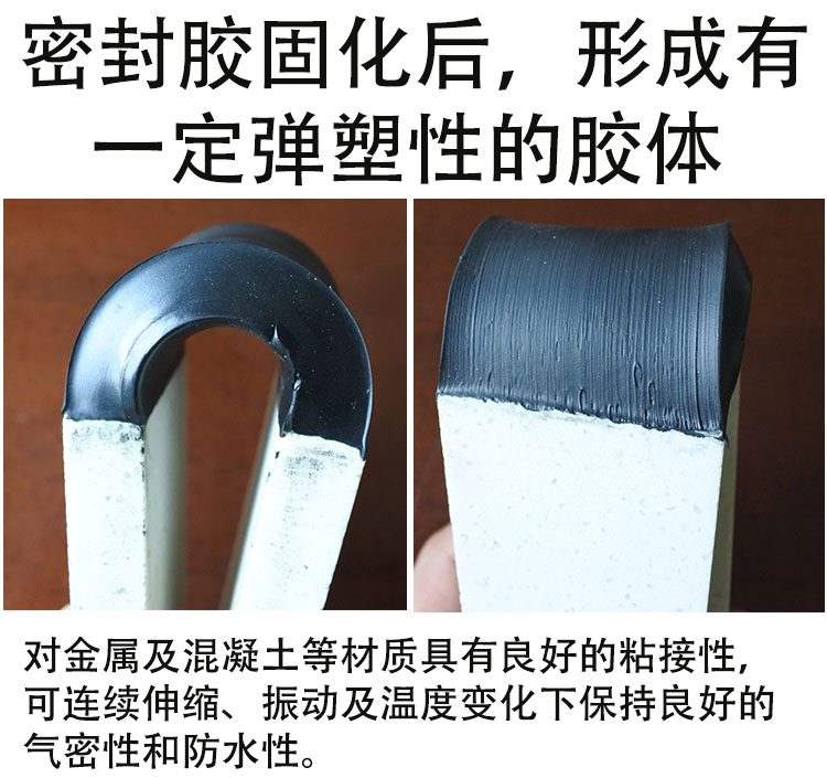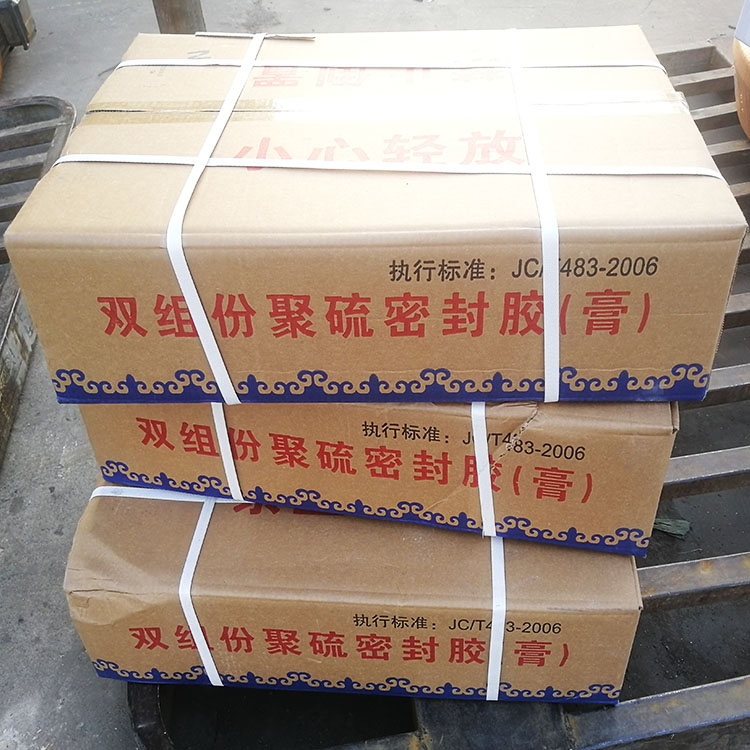 双组份,AB型建筑嵌缝膏,耐老化,防渗堵漏,聚硫密封胶。双组份聚硫密封胶为双组份膏状物,两组分有明显色差,A组分为白色料,B组分为黑料。使用比例为A:B=100:8-12,可施胶时间2-6小时。双组份聚硫密封胶属中性,耐水耐油、耐弱酸碱,耐老化好,具有良好的防渗漏粘接密封作用。