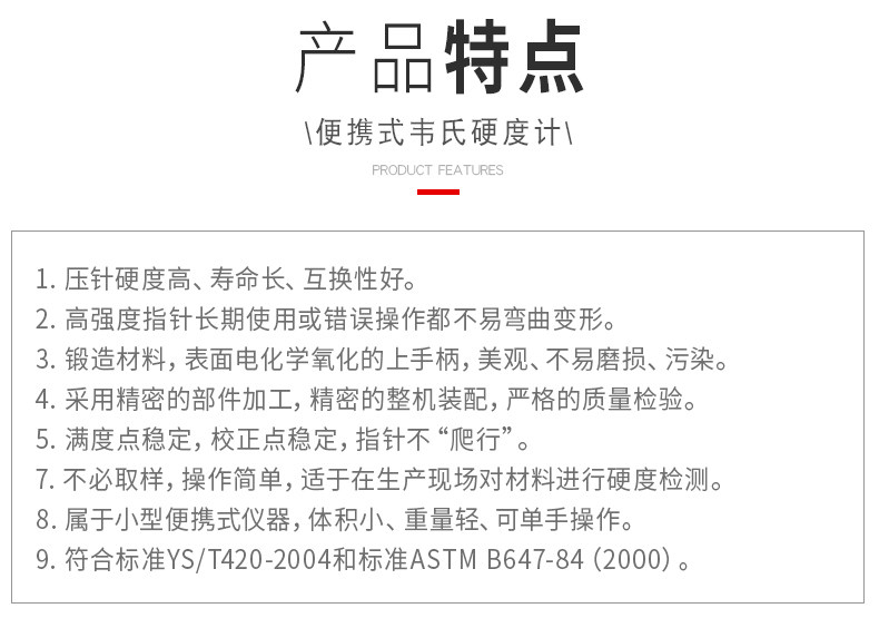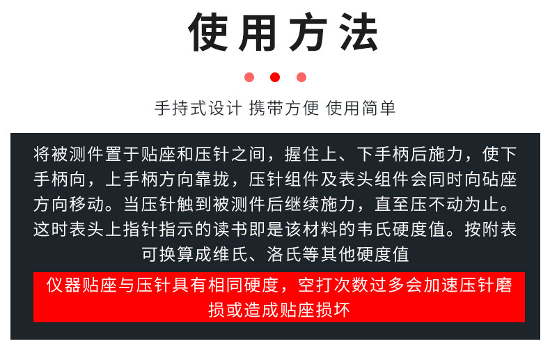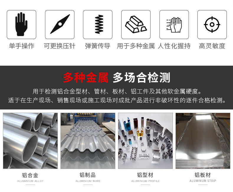 主要用于测试铝及铝合金硬度,也可以测试其他软金属及玻璃钢制品的硬度。