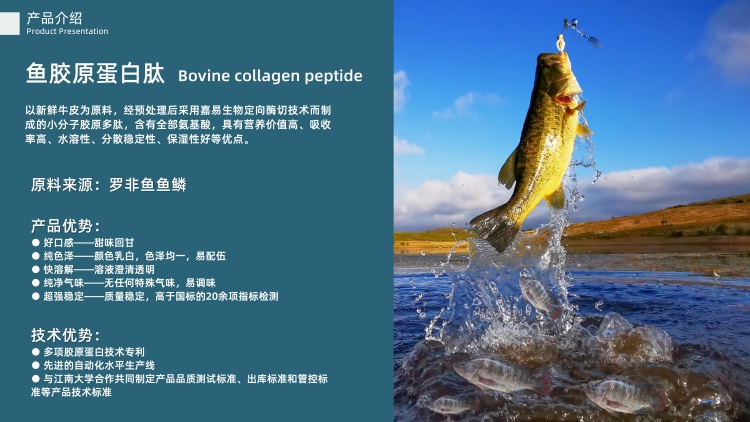 以新鲜牛皮为原料,经预处理后采用嘉易生物定向酶切技术而制成的小分子胶原多肽,含有全部氨基酸,具有营养价值高、吸收率高、水溶性、分散稳定性、保湿性好等优点。