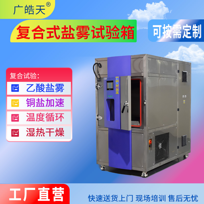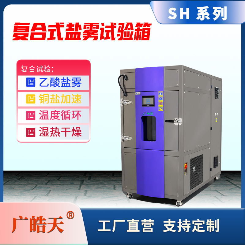 原理:通过在一定容积空间内,用人工方法造成盐雾环境,对产品的耐盐雾腐蚀性能质量进行老化。天然环境盐雾含量的几倍或几十倍的氯化物盐浓度,会腐蚀速度大大提高。