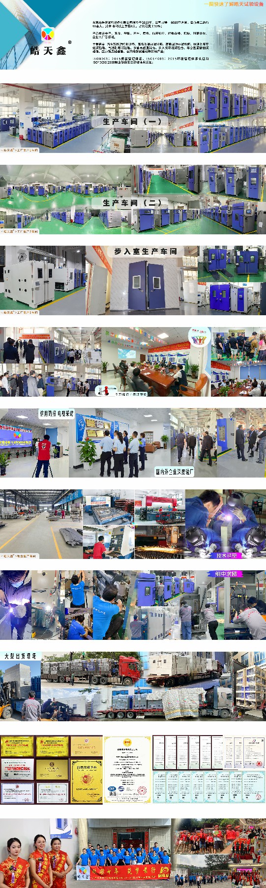 标准配置:观察窗(箱内照明)、ф50mm电缆孔(位于左连)一个、试样架二套(高度可调)、移动工作轮、加湿水箱