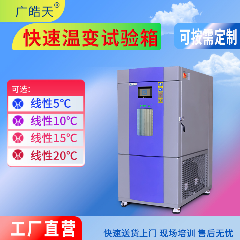 通过先进的加热和制冷系统来快速改变箱内温度。制冷系统一般采用压缩机制冷,部分型号采用复叠式制冷系统,利用制冷剂的相变吸收热量来降温。加热系统多采用热风循环加热,将电能转化为热能以提高箱内温度。同时,依靠准确的温度控制系统,实现温度的快速升降,并保持温度稳定。功能特点