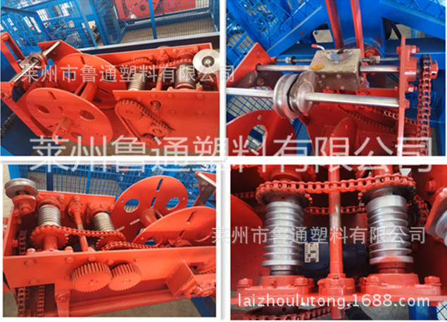 莱州市鲁通塑料有限公司生产二合一三或四股制绳机。捻绳直径范围从3-30mm。捻股和制绳一次完成的捻绳机有M33/44/55/66/77五种型号;设备主要适用于的制绳工厂来选用,适用于无限长的丝、膜、棉纱、麻线等原材料,制绳效率高、噪音低、操作简单、安全。
