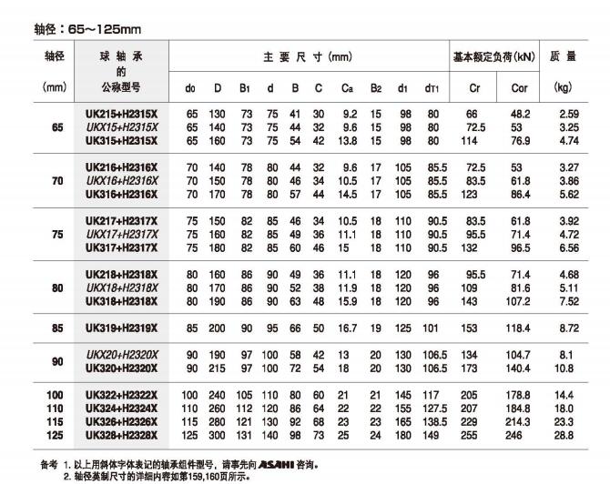 ASAHI旭精工轴承 立式座类型轴承组件UK+H型代理