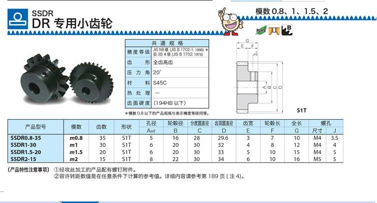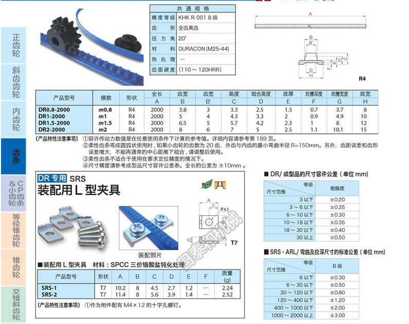 KHK齿条SSDR/DR专用小齿轮齿条日本KHK小原斜齿轮授权