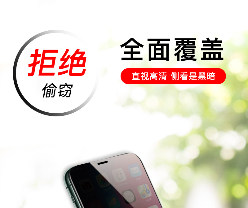 以上就是苹果钢化膜,苹果高清防窥膜,钢化膜批发,防偷窥钢化膜厂家信息介绍,如想了解更多防偷窥钢化膜信息,请关注我们。