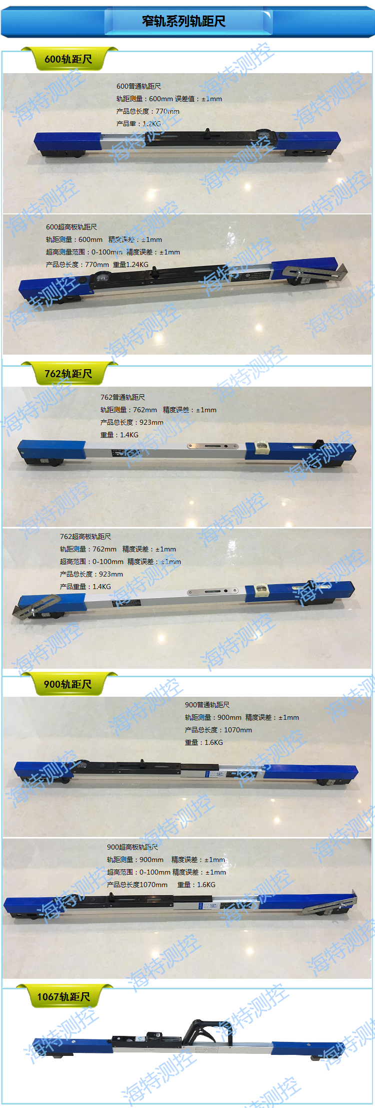 温馨提示:本店部分产品新疆、内蒙、西藏等偏远地区不包邮 ,拍前请咨询客服,谢谢合作!欢迎来到襄阳海特测控,本公司主要产品:数显轨距尺、轨距尺检定器、轨底坡测量仪、轨底坡检定器、高精度倾角传感器、铁路接触网测量仪、钢轨廓形仪、钢轨探伤仪、钢轨平直度检测仪、铁路轨距尺、铁路方尺、支距尺、支距尺检定器、曲线正矢尺及铁路工务工具器材(翻轨器、铁路道岔钩锁器、铁路铜线、检车锤、铁路、组合轨缝塞尺、运轨器、钢轨急救器、信号旗、铁路羊角撬棍、液压直轨器、铁路螺栓扳手系列、钢轨倒角器、左右标尺、铁路巡道喇叭等) 。厂家 质量保证 我们的产品货真价实,性能可靠,欢迎电话咨询!热情欢迎新老顾客来电咨询选购。
