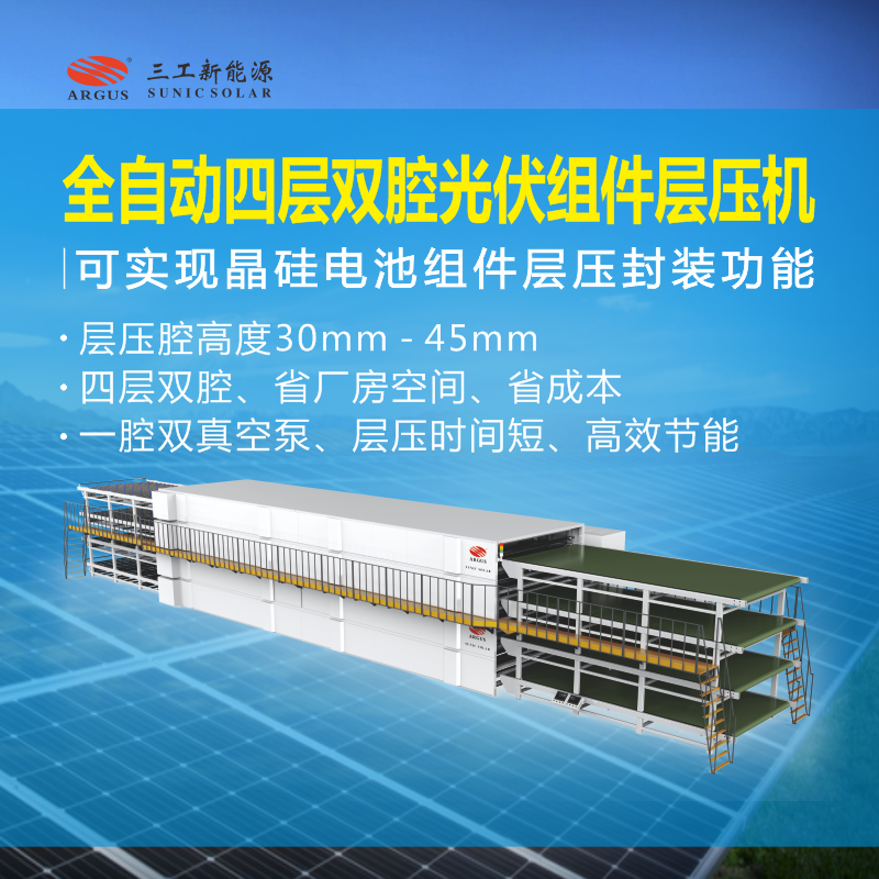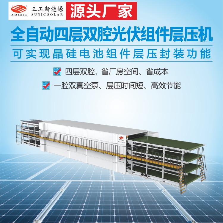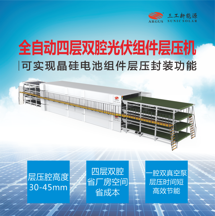 本层压机的主要优势在于其工艺稳定性、广泛的材料兼容性以及高度的智能化水平。高精度的温度控制与均匀的热场分布,是保障EVA/POE胶膜或PVB胶片完全、均匀固化,实现组件高质量封装、杜绝气泡和脱层的关键,从而提升组件成品率与长期可靠性。其四层双腔连续式设计,相比传统单腔设备,理论上可大幅提升产能与生产节拍。强大的兼容性使其能够灵活应对单玻、双玻乃至三玻组件,以及含CdTe薄膜电池的异质结组件等多种产品的生产需求,为生产线提供了未来工艺扩展的弹性。集成化的MES接口则为打造数字化透明工厂,实现智能制造与质量管控提供了坚实基础。