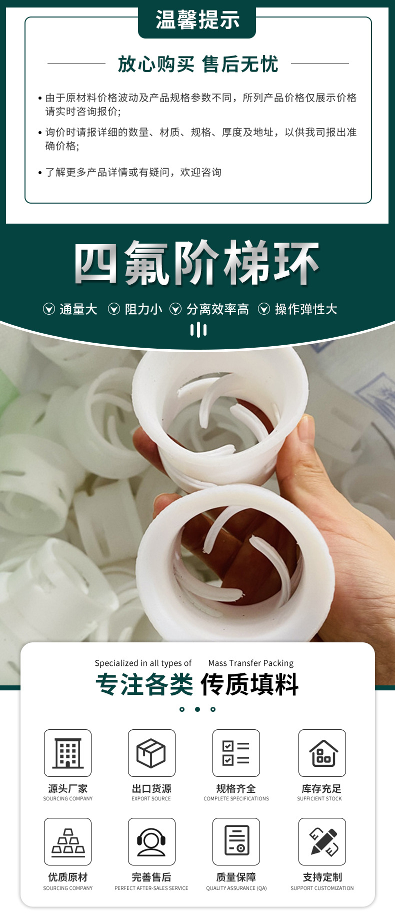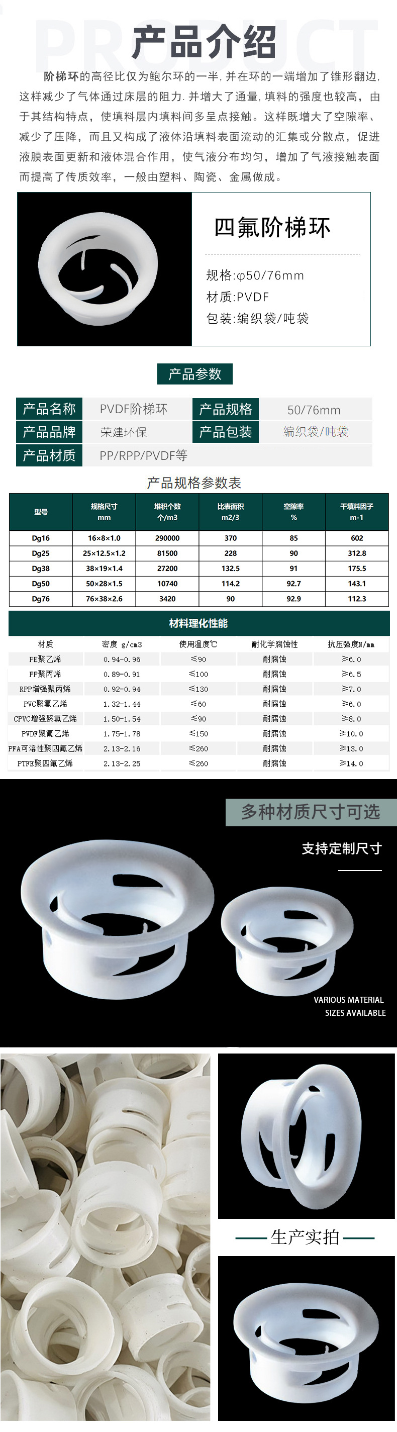 供应PTFE聚四阶梯环填料50mm76mm四氟阶梯环散堆填料