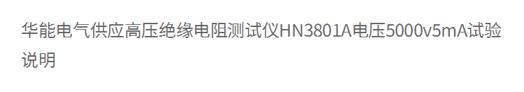 华能电气供应高压绝缘电阻测试仪HN3801A电压5000v5mA试验说明
