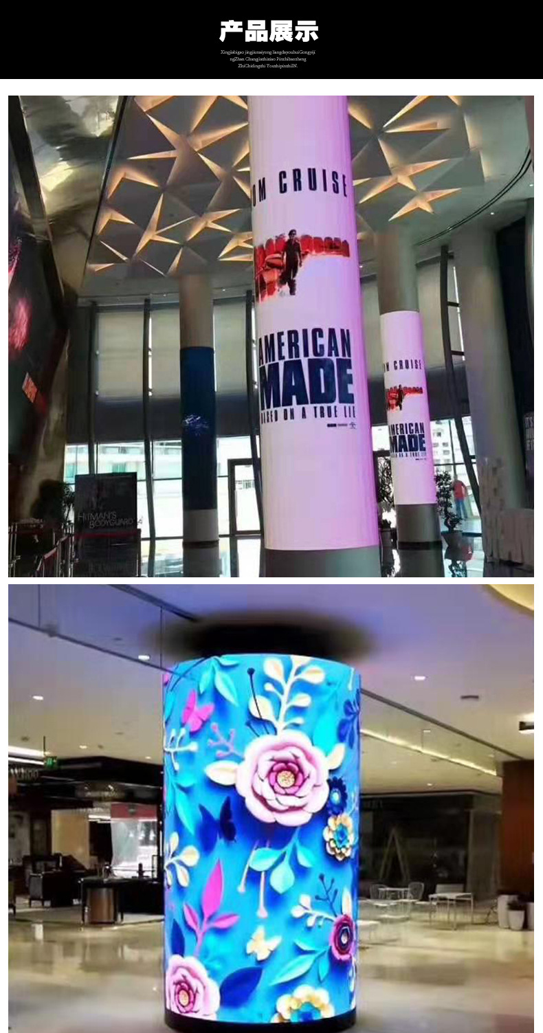 圆柱led屏可以显示所有的颜色,其原理和功能与电脑显示器一样,可以播放各种公开信息、广告、动画、文字、图片、VCD、电视、电影、视频信号;采用多种扫描技术和模块化设计技术,可靠性、稳定性更高;面罩独特的下倾角设计,减少浪费,提高有效观看角度;