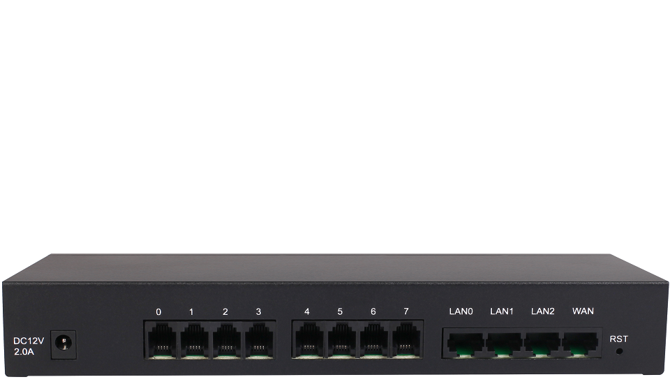 DAG1000-8O一款多通道高接入型网关,为小型企业,家庭式办公,远程办公室和多分支企业提供了一个低成本,操作简单的IP语音电话解决方案。支持8个FXO语音接口,用于连接传统电信运营商电话线或模拟PBX。
