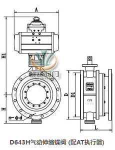| D643H气动伸缩蝶阀 (配AT执行器) | D641X气动伸缩蝶阀 (配G执行器) |