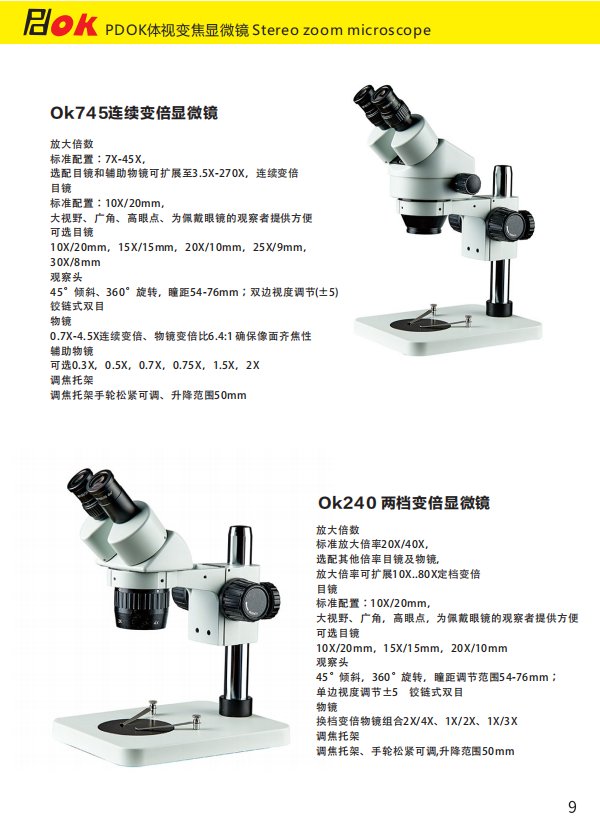 标准放大倍率20X/40X,选配其他倍率目镜及物镜,放大倍率可扩展10X..80X定档变倍