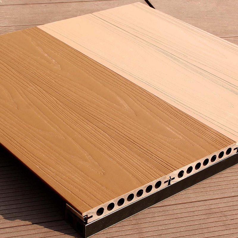 光脚丫木塑地板CO-04半包覆共挤层,安装无对接缝适用于阳台,户外露台等。防水、防腐、防潮、耐高温、是一款免维护的地板。
