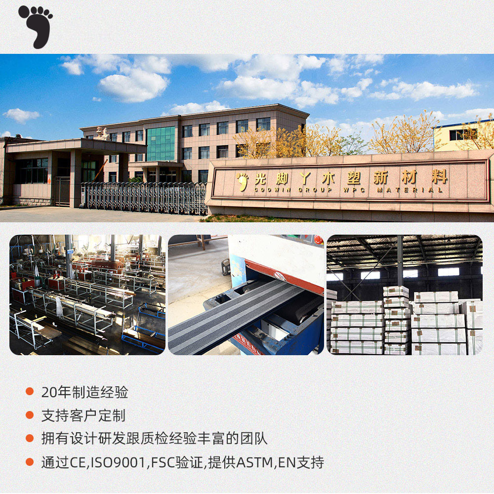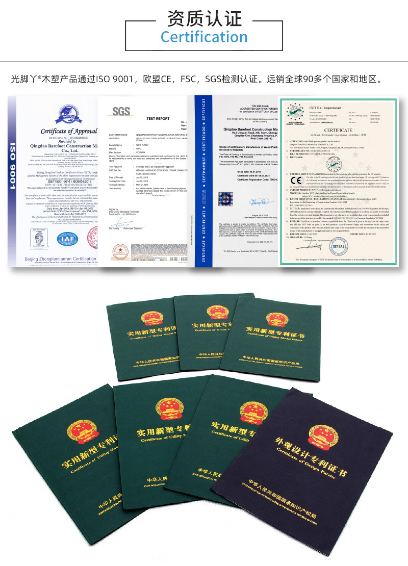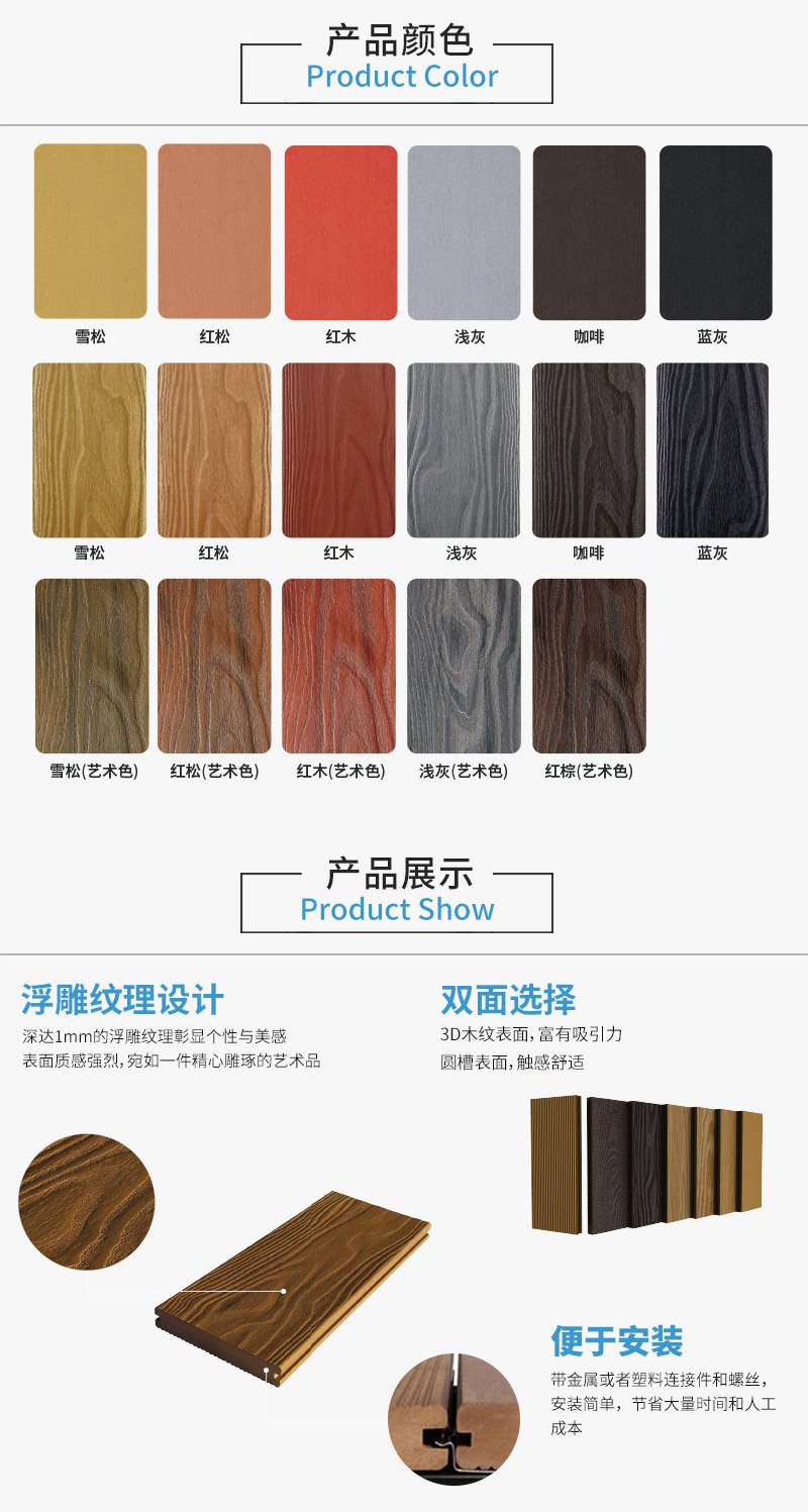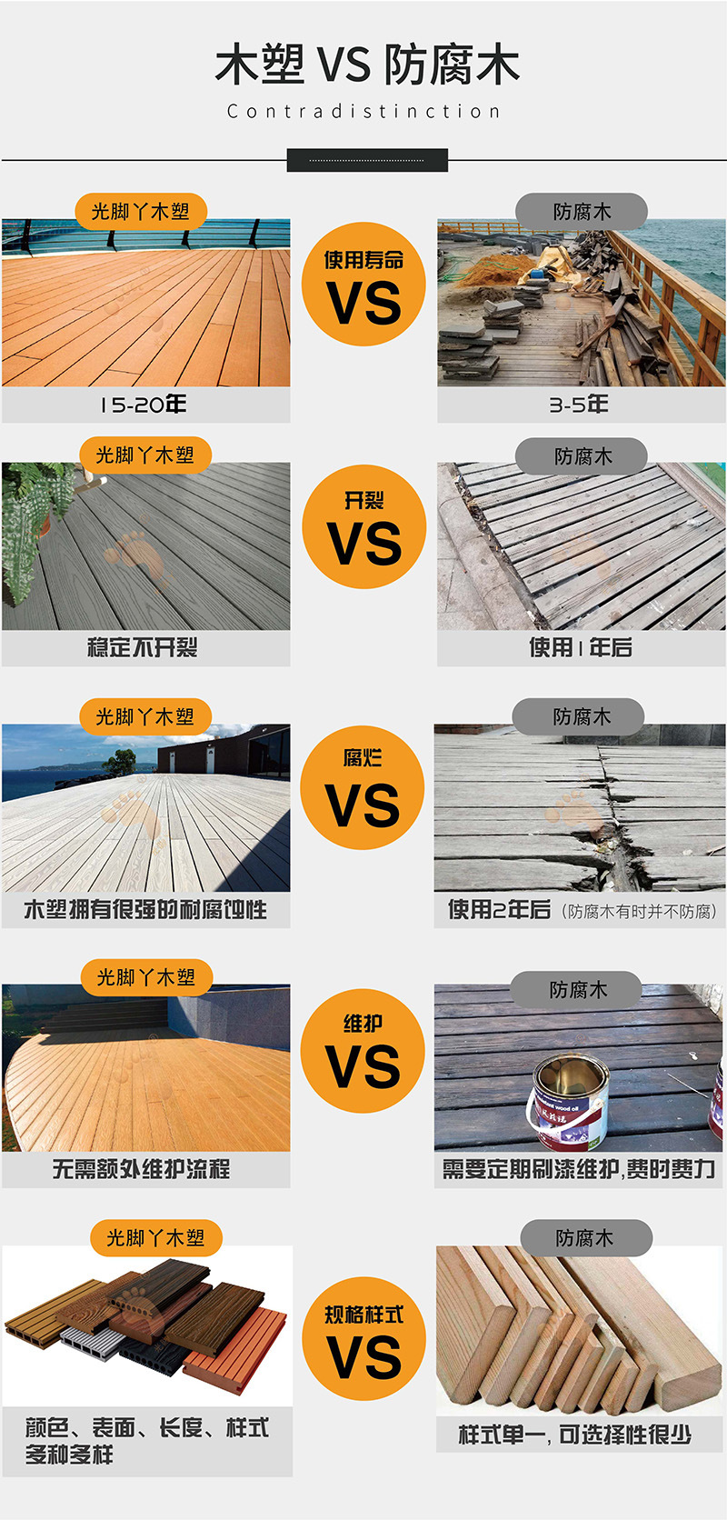 木塑实心地板,强度高耐候性强,表面可自由选择,适用于步行街、栈道、商场等人流大的地方。