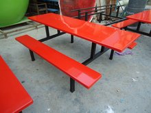 1、材质介绍:快餐桌是主要用于快餐店的家具配套产品。国内市场上的快餐桌一般采用钢管支架和配置防火板桌面结构,由于构造结实耐用、造型新颖、线条流畅,受到了很多消费者的欢迎。