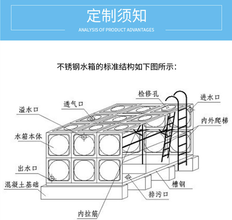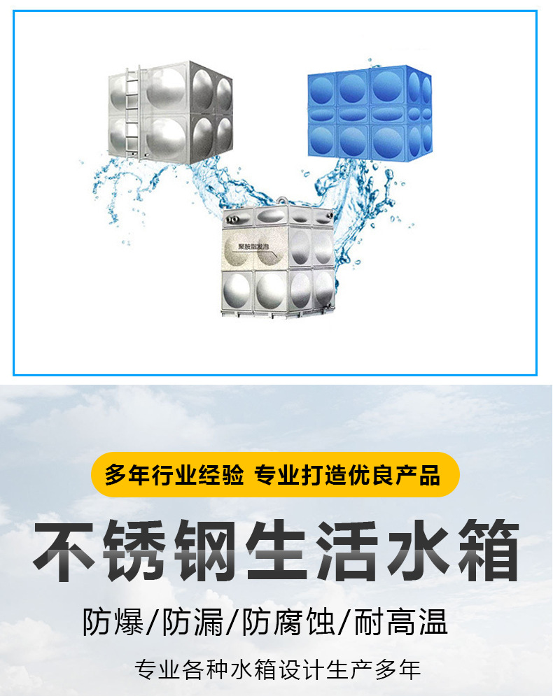 不锈钢消防水箱作为储蓄生活用水的设备,只能装生活用水,千万不能装带盐或者其他酸性,碱性的水。