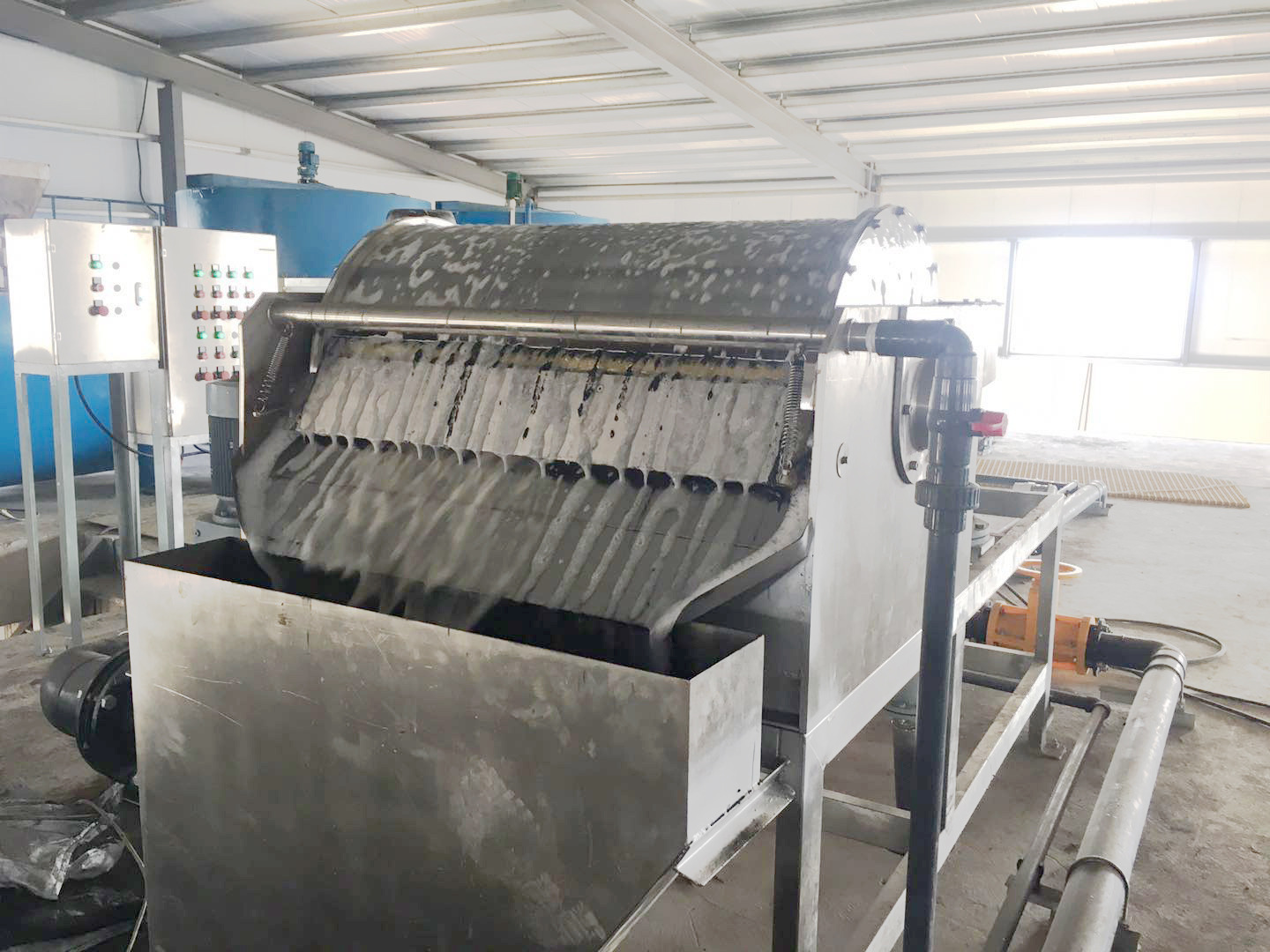 工作原理:含有磁性粉末的污泥通过磁泥浆输送泵输送至磁分离器。当含磁性粉末污泥通过磁性分离器时,磁性粉末中含有磁性粉末的污泥被磁性分离器的核心部件强磁鼓吸收并拾取,将磁性粉末从污泥中分离。分离的磁性粉末被重复使用,污泥进入污泥处理单元。