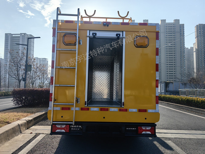 该车的车厢经过精心设计,充分考虑了燃气应急抢修和市政管道救援工作的实际需求。车厢内部空间布局合理,设有多个专业工具存放区域,可分类存放各种抢修工具和设备,如管道切割工具、焊接设备、检测仪器等,方便救援人员快速取用。同时,车厢采用了高强度的材料制作,具有良好的密封性和防护性能,能够有效保护车内设备免受外界环境的影响。