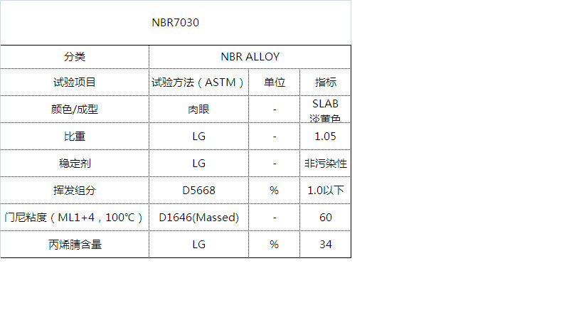 丁腈橡胶7030是一种机械充分熔共混物,是由70%的中高丙烯腈含量丁腈橡胶与 30%的聚氯乙烯树脂混合。由于丁腈橡胶7030已经预先聚合,橡胶常温可以混合和随后的工厂运营中采用。丁腈橡胶7030具有足够的稳定剂,为正常老化条件,可以处理与正常混合程序。它具有较高的复合强度、相对较好的物理性能和优良的挤出加工性能,为产品的表面提供了光滑的表面。