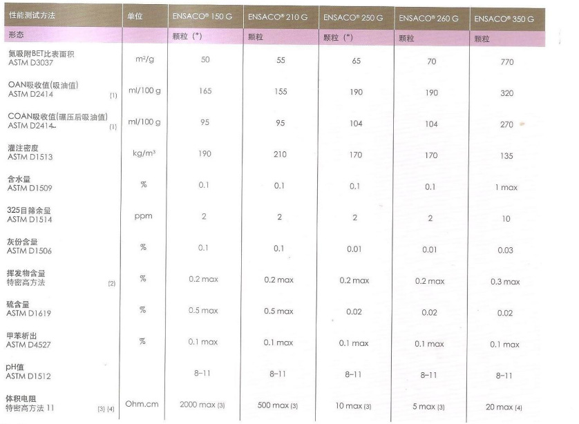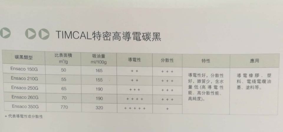 ENSACOTM导电碳黑是由瑞士特密高TIMCAL公司开发生产的“MMM”法高导碳黑,目前有五个规格,依次是150G,210G,250G,260G,350G以及150P,250P。