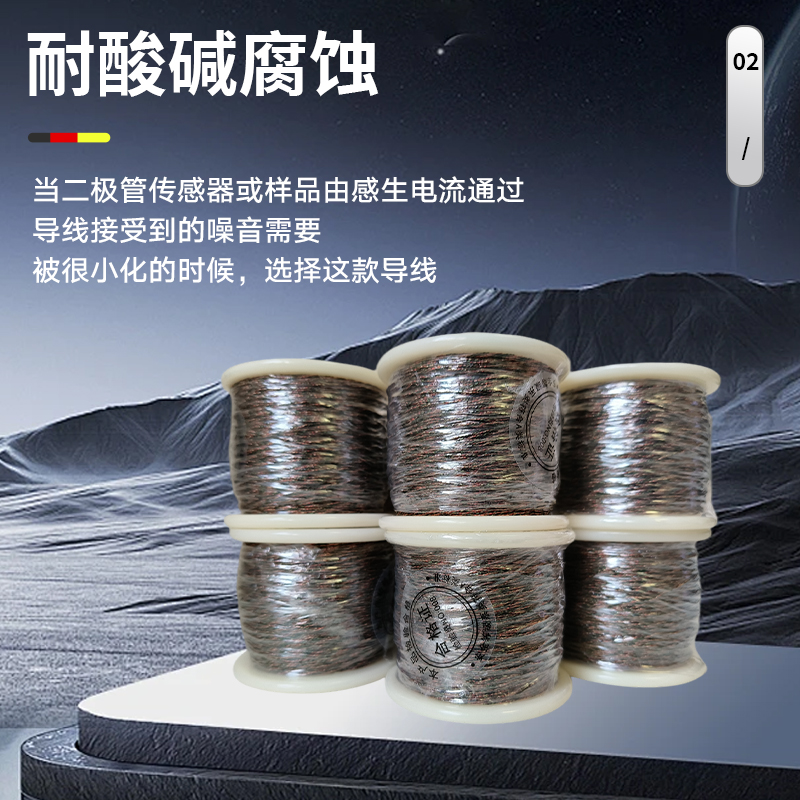 四色磷铜低温导线2对4股双绞线 4股双绞线是2对(4线)32或36AWG磷铜线。每对包含每厘米3.15拧(每英寸8个拧),2对是盘绕的,每厘米1.57个拧(每英寸4个拧)。当二极管传感器或样品由感生电流通过导线接受到的噪音需要被*小化的时候,这个线是良好的选择。使用一对绞线用于传感器励磁,其他对绞线用于传感器输出电压来*小化电磁铁噪音接收。 四色磷铜低温导线2对4股双绞线