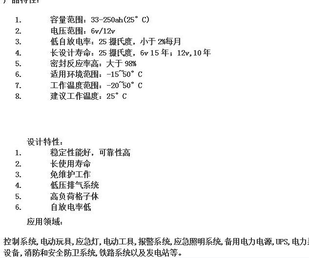 2.电池特性:标准系列,浮充寿命可达8~10年。
