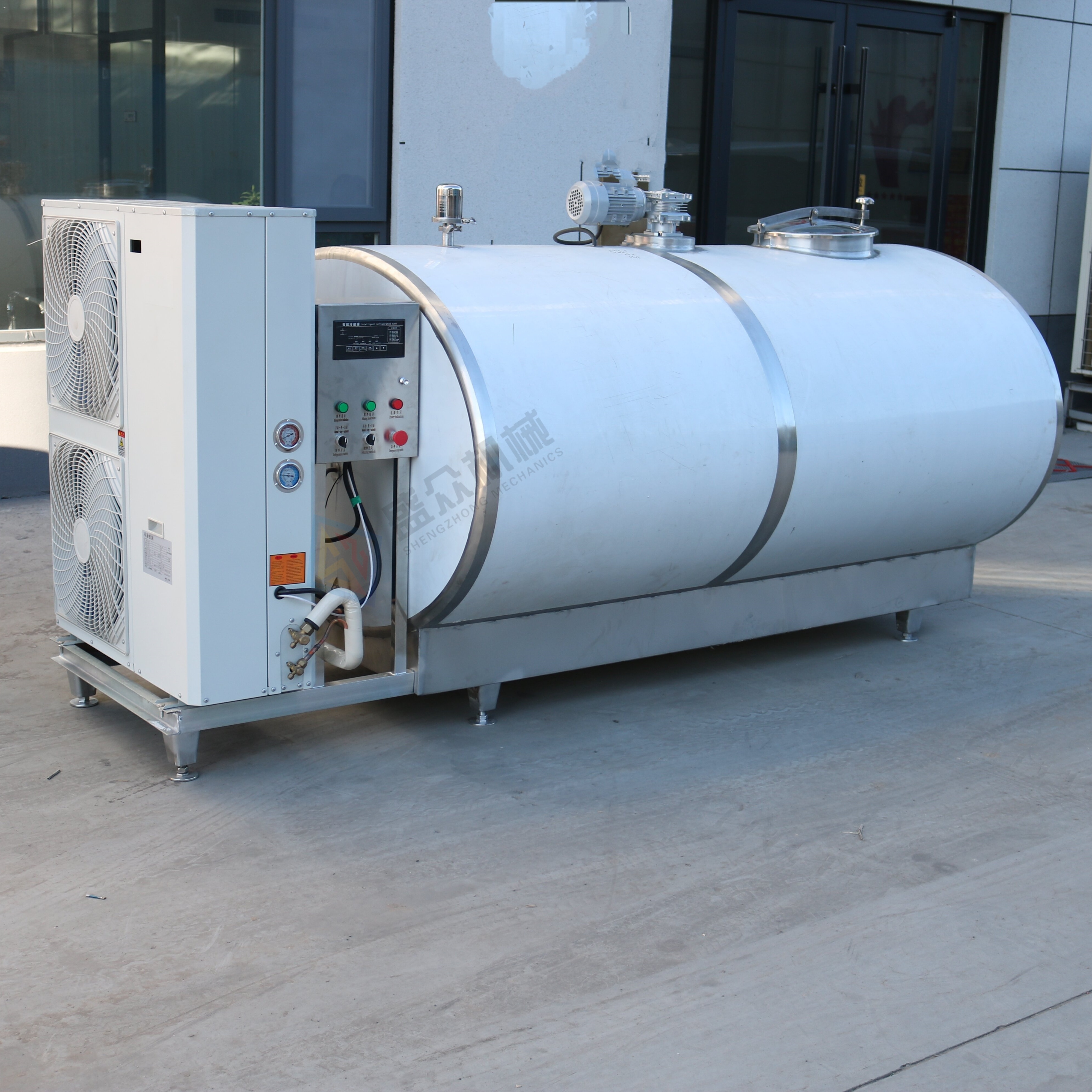 牛奶制冷罐是一种用于储存和保鲜牛奶的设备,它通过制冷系统将牛奶冷却至适宜的储存温度,以延长牛奶的保质期并保持其新鲜度。牛奶制冷罐在乳制品行业广泛应用,特别是在牛奶生产、加工和销售环节。