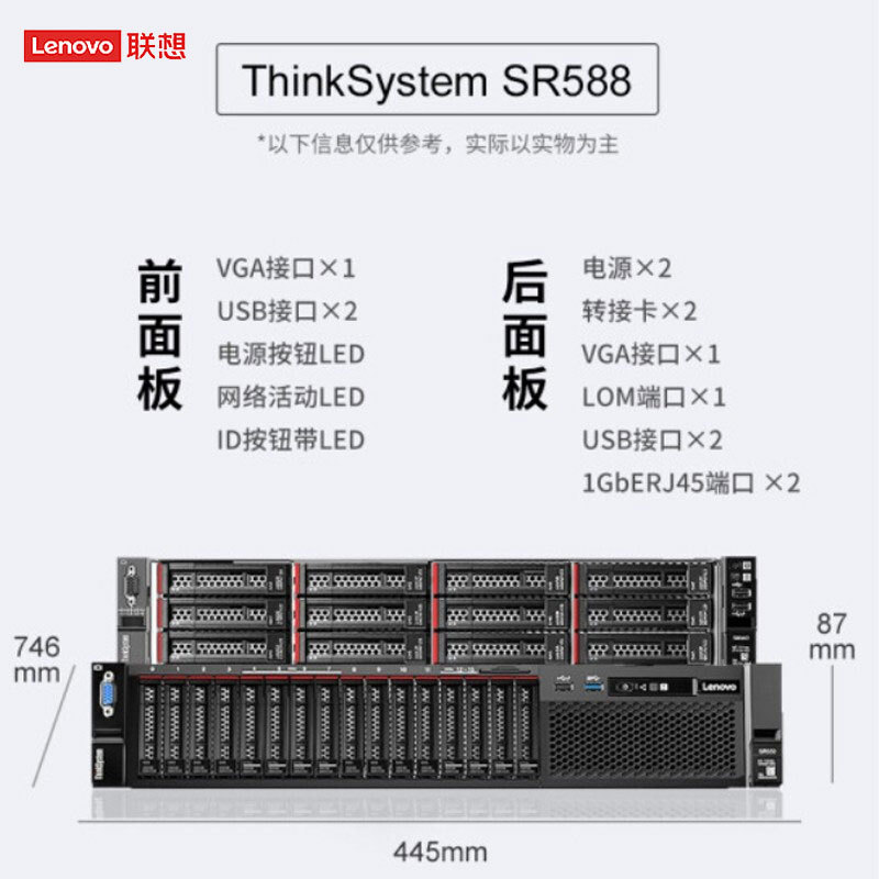 配置二SR588小盘,1x4210R 2.4G 10C 支持2个CPU,1x32G DDR4 支持16根内存,无硬盘,支持8x2.5 支持16块2.5‘硬盘,RAID5350-8i,板载2x1GbE,1x550W(中国电源线)支持冗余热插拔电源,3Y 7x24