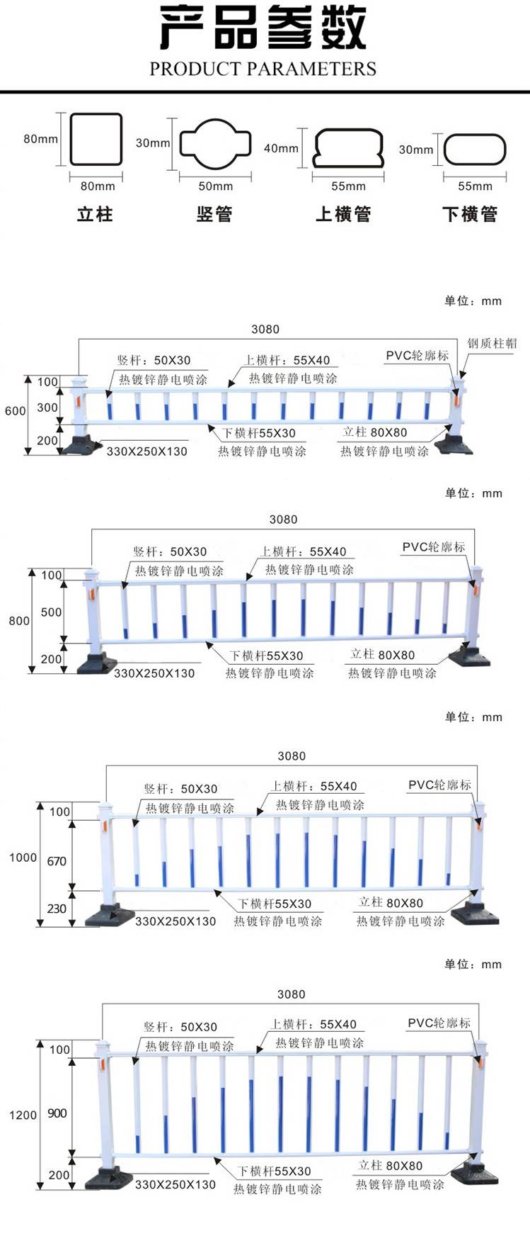 3、市政护栏是目前国内外深受欢迎的道路隔离护栏之一。主要用于场区隔离带,市政工程隔离带,园林护栏。市政建设中的公园、草坪、动物园、池湖、道路、及住宅区的隔离与防护;宾馆、酒店、超市、所的防护与装饰。