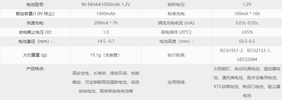 1.2V AA1000mAh |