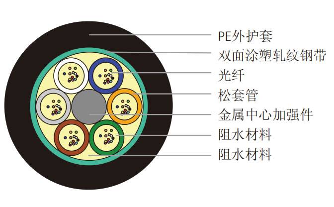 ● 松套层绞式结构,便于接人时光纤分组,分别有单独的松套管保护。