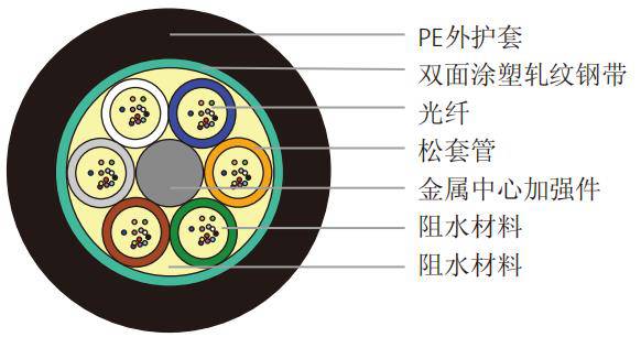 ● 采用平行钢丝加强件,使光缆的抗扭转性更强,不易打结