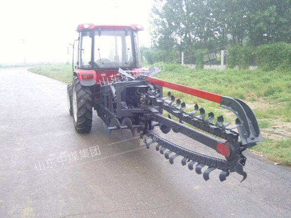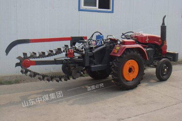 开沟机是一种 实用的新型链条式开沟装置。其主要由动力系统、减速系统、链条传动系统和分土系统组成。柴油机经过皮带将转动传递到离合器后,驱动行走变速箱、传动轴、后桥等来实现链条式开沟机的向前或向后的直线运动。zmjt058