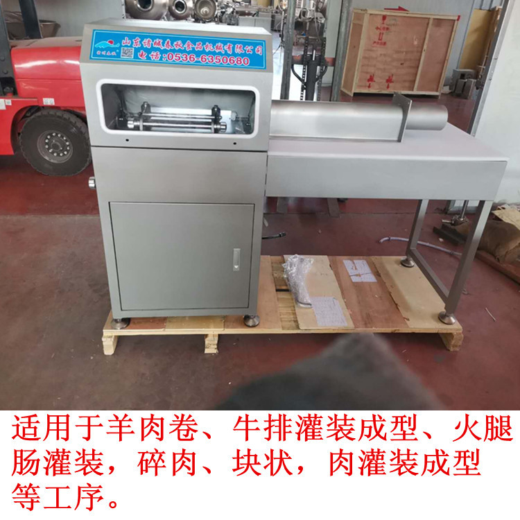 碎肉牛排填充打卡设备全自动填充机配合肉卷拉力机使用,可替代现行由人工填制肉卷的操作