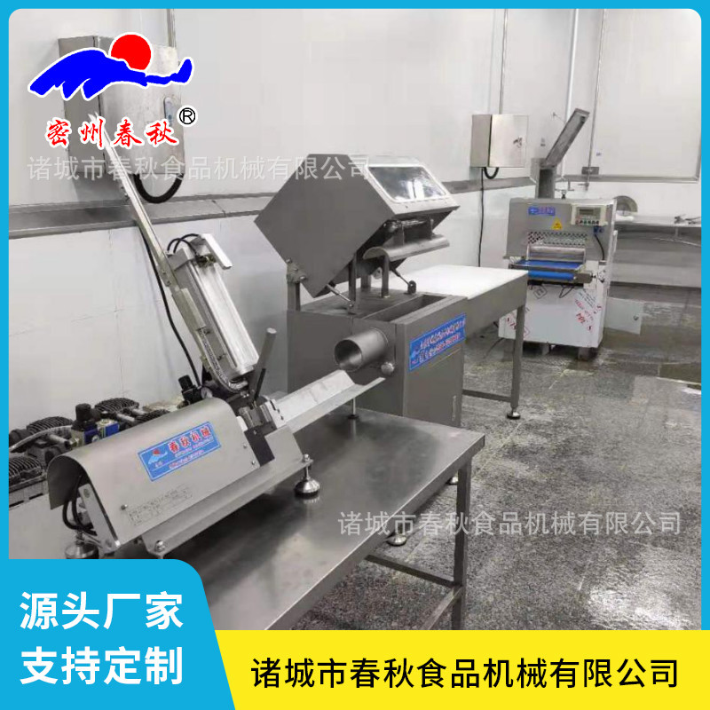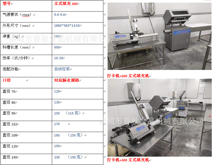 适用范围:于羊肉卷成型,火腿肠灌装等场合预装产品的包装膜被夹紧气缸夹紧后由拉伸奇光把肠衣拉紧至要求,即可打卡封口及切断产品饱满程度可以通过压力调节装置随时调整,然后再由打卡气缸打卡,组合牛排,猪排,鸡排灌装打卡机,