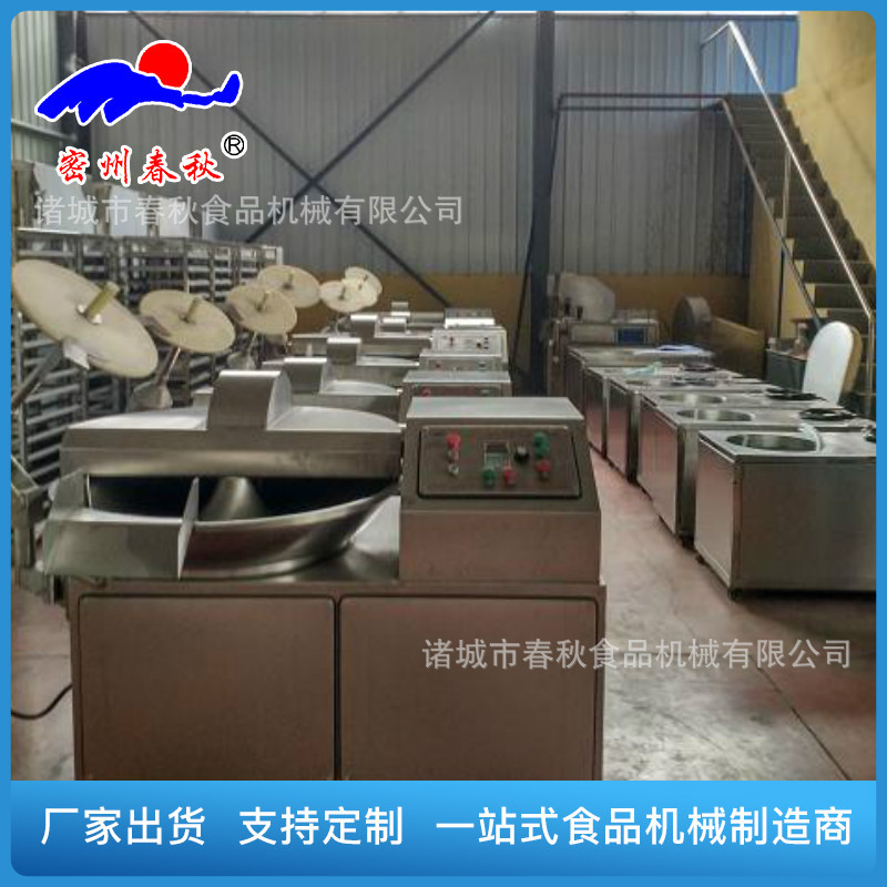 那么鱼泥需要用什么样的设备才能达到更好的效果呢,春秋机械推介鱼豆腐高速斩拌机,斩拌机的刀速每分钟4500转,刀和锅体的间距控制在1.5毫米内,斩出来的鱼泥非常精细,而且达到雷锤的效果,做出来的鱼豆腐,弹性特备好,口感细腻,色泽均匀一致。